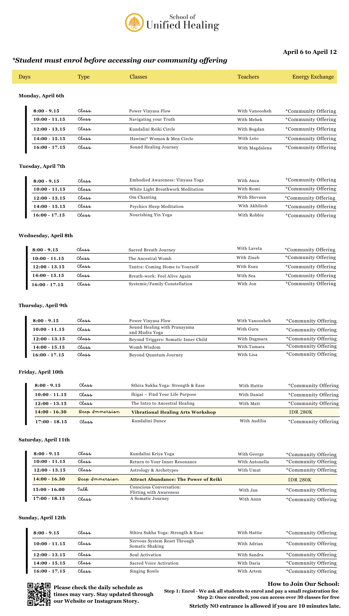 - Dance Improvisation with Kira at 10 am and will be replaced with Nervous System Reset Through Somatic Shaking with Adrian.