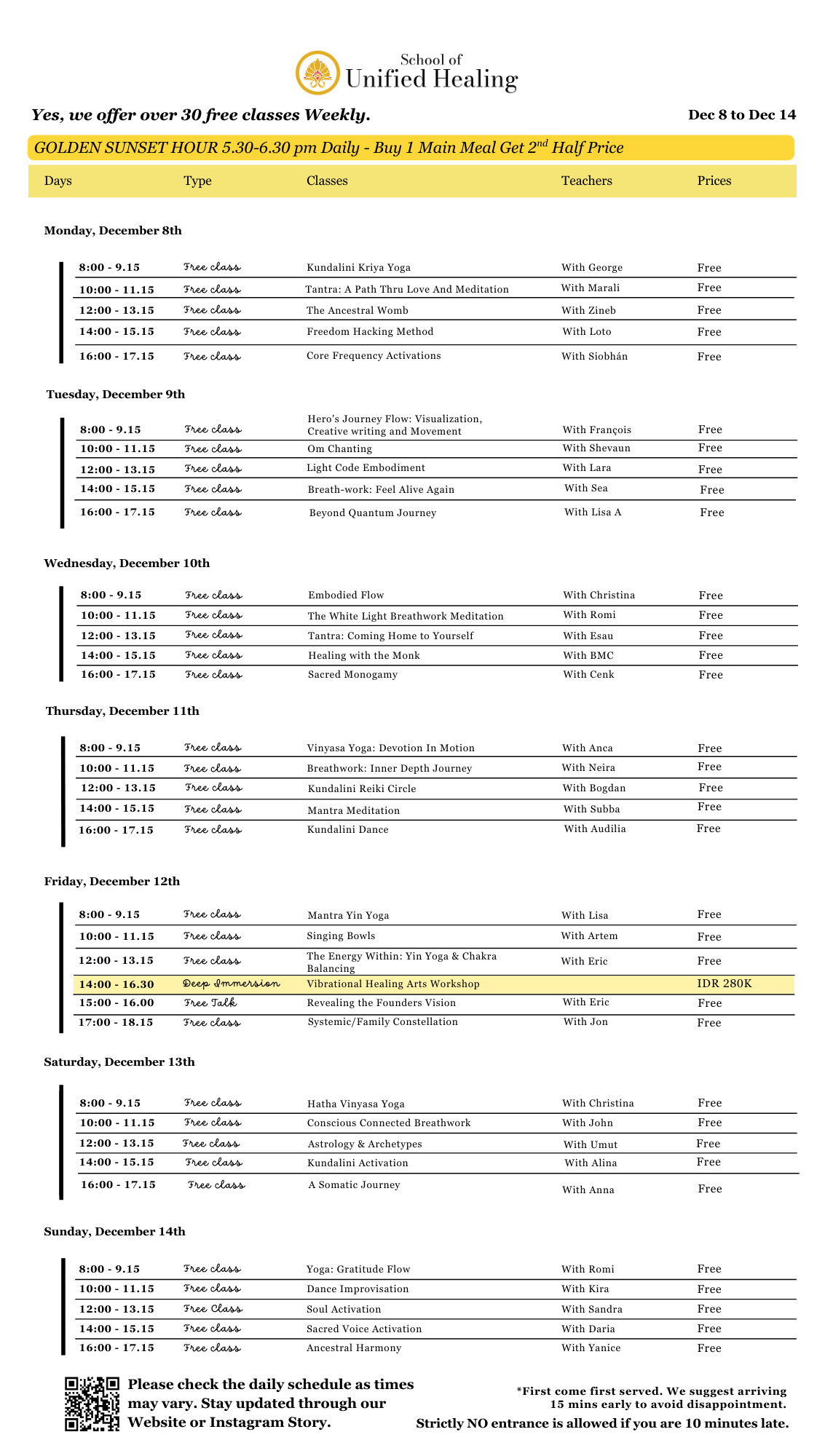We are sorry to CANCEL “Singing Bowls” with Artem on Friday at 10 am. we will replace with Om Chanting with Shevaun. Thank you.