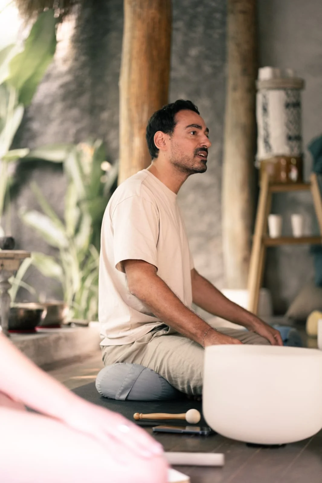 He guides students to feel energy directly—through conscious breath, long-held Yin poses, and intuitive partner work—so they can realign with their natural rhythm and power. Each practice is an invitation to soften, observe, and let your body speak.