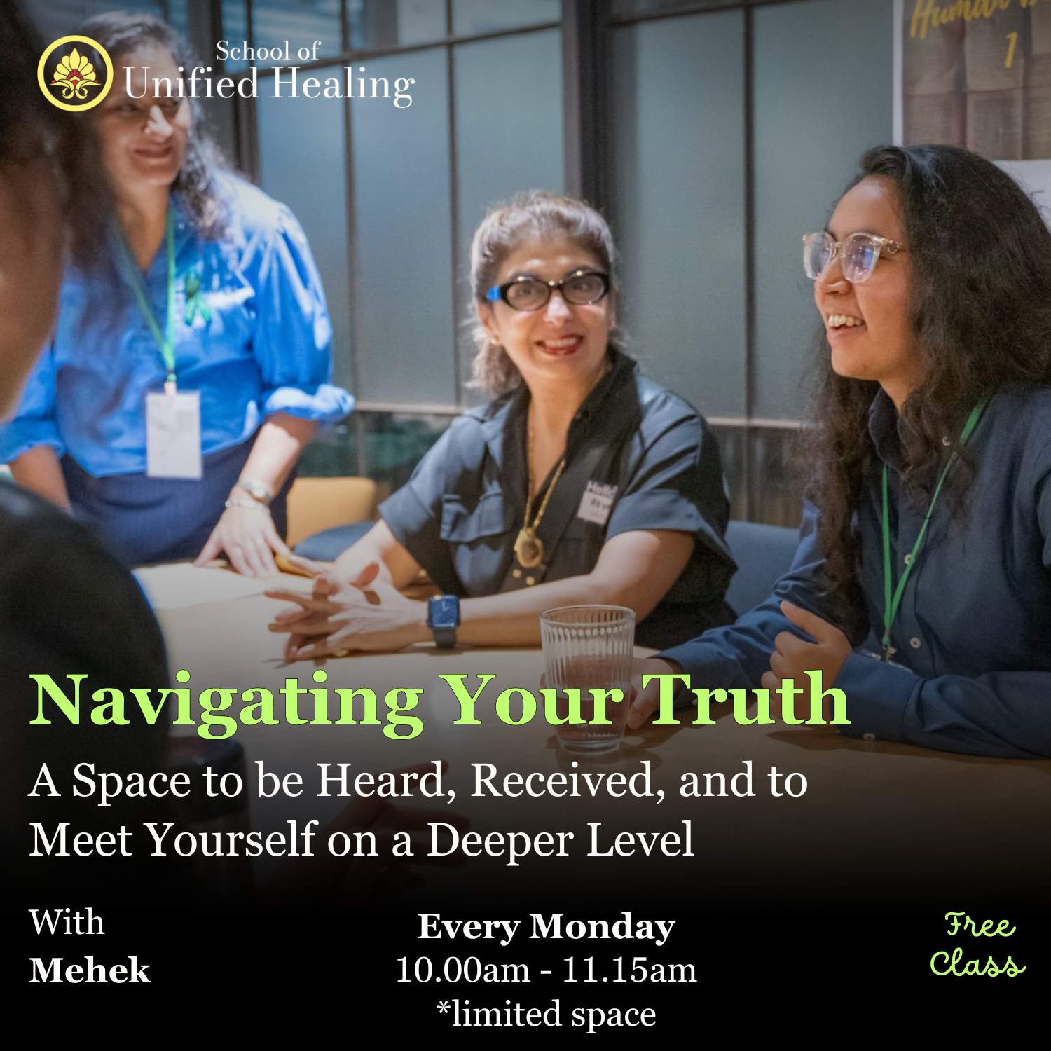 This class is not a place to share intense traumas or heal severe mental health illnesses. For those needs, please see a qualified mental health professional or contact Mehek directly. -