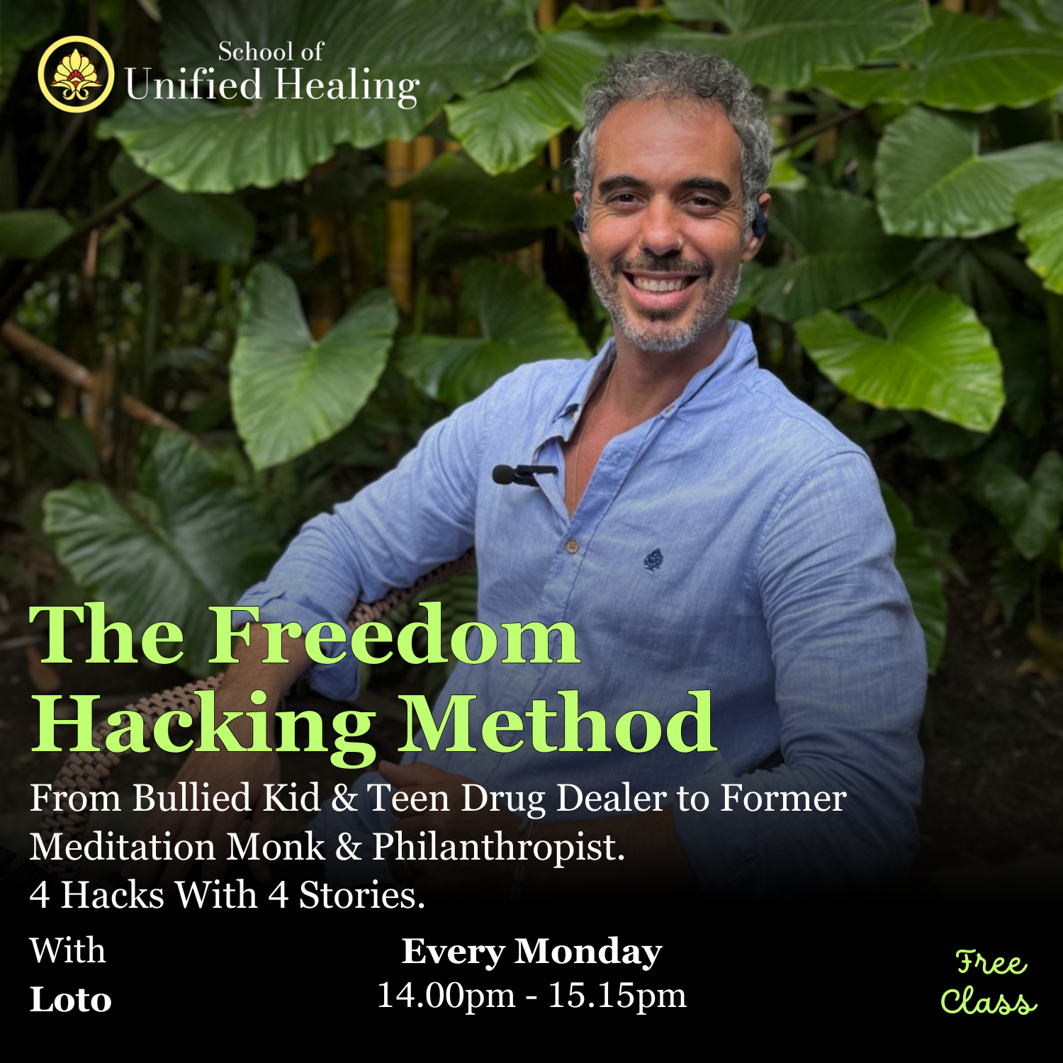 Join me for a transformative story telling journey (+ Q&A and at least 1 Practical Exercise) as I share the transformative life lessons I’ve gained over the past 25 years — from the struggles of being a bullied kid, the chaos of a teen drug dealer’s life, to the peace and wisdom of a meditation monk and now conscious entrepreneur and philanthropist. Discover how these experiences can empower your own individual and your teams path to success and happiness.