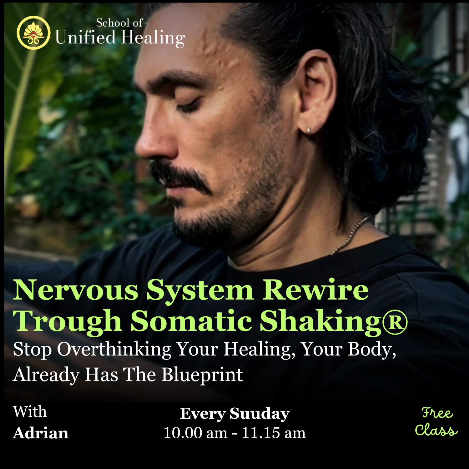 This practice uses two types of somatic shaking: Dynamic Shaking, where you intentionally move your body to release tension and anxiety, and Neurogenic Shaking, where the body begins to shake naturally, helping you go deeper and release what’s stored inside.