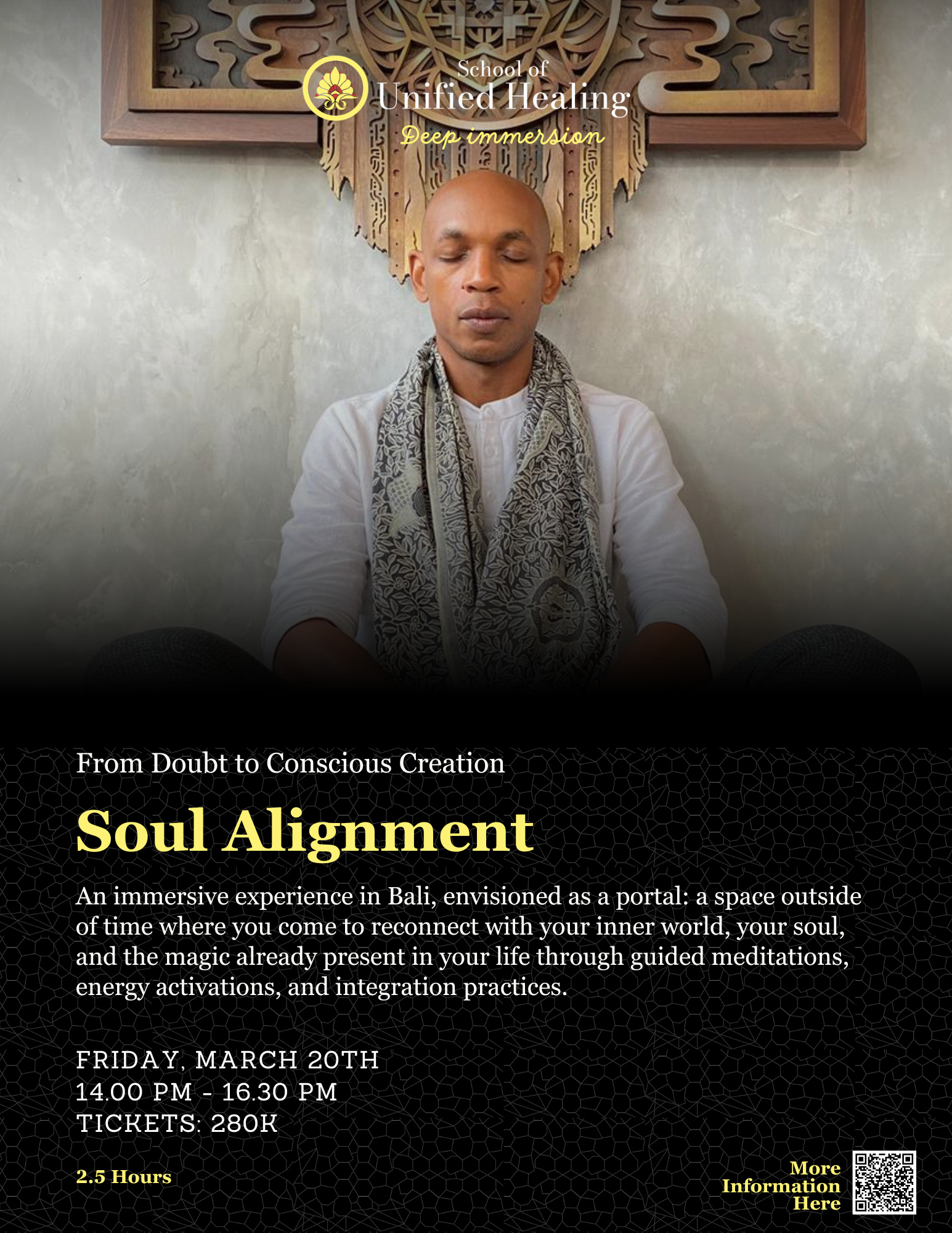 Cost : 280KReveal the Magic of Your Life is an immersive experience in Bali, envisioned as a portal: a space outside of time where you come to reconnect with your inner world, your soul, and the magic already present in your life. Through guided meditations, energy activations, and integration practices, you will be guided to refine your intuition, listen to your subtle perceptions, release what weighs you down and clarify the life direction that truly resonates with you.